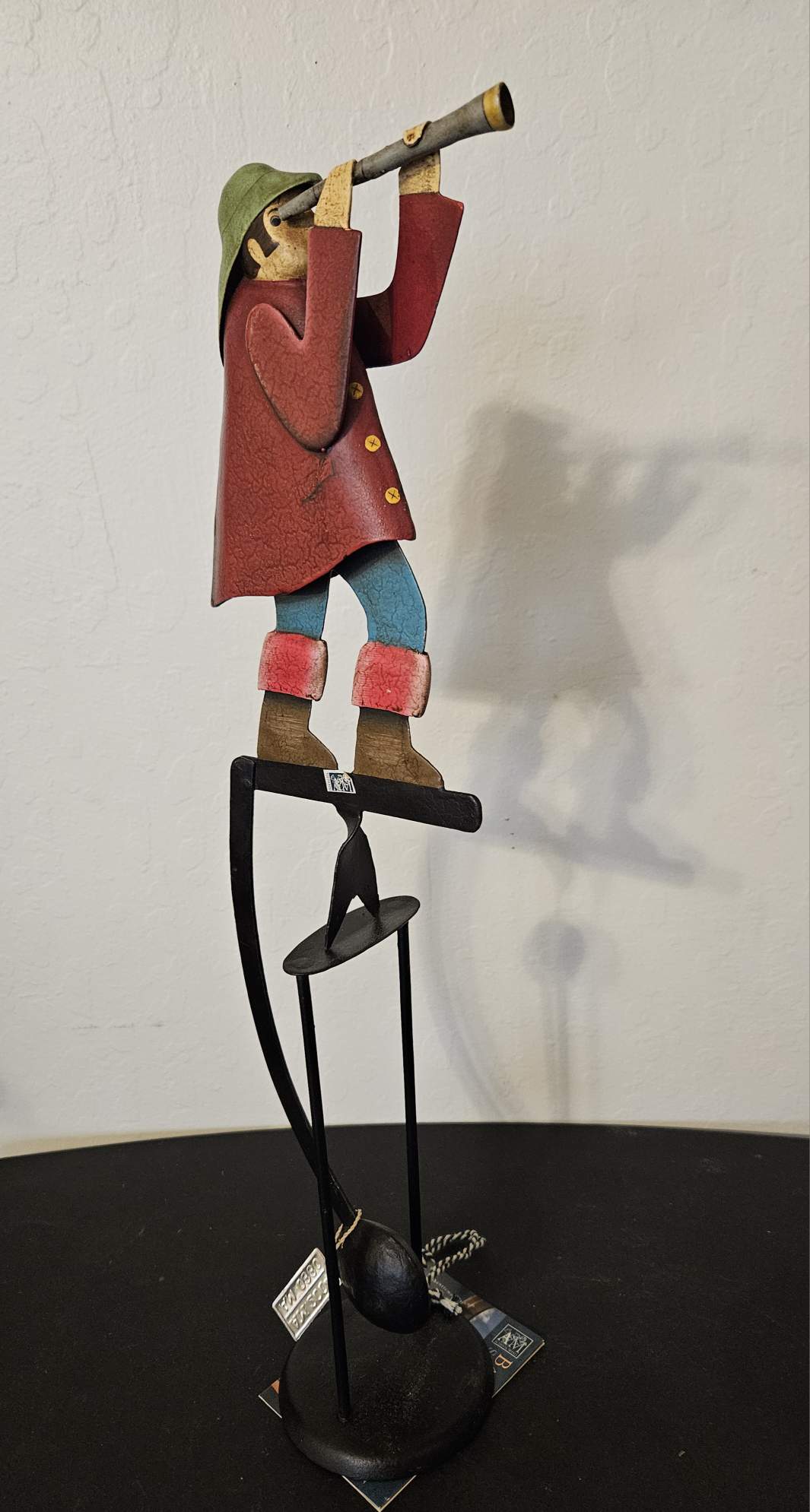 Balancing toys were popular in the 19th century. Dating back to ancient China and India, where they were most often carved from soft wood, the western balancing toys were traditionally made from tin or metal. Illustrations of balancing toys can be found in educational literature from the 18th century. The physics governing the movement of such toys intrigued and amazed people. Balance toys came in various forms, and our particular shape is traditionally called a skyhook.